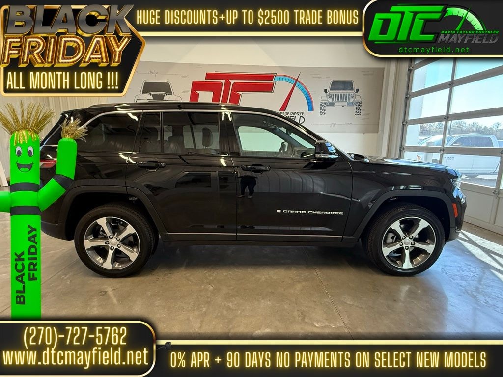 506 Watt Amplifier, 9 Amplified Speakers w/Subwoofer, Active Noise Control System, Alloy wheels, AM/FM radio: SiriusXM with 360L, Brake assist, Capri Leatherette w/Axis II Seats, Dual-Pane Panoramic Sunroof, Electronic Stability Control, Emergency communication system, Front Bucket Seats, Front dual zone A/C, Front fog lights, Heated front seats, Heated rear seats, Heated steering wheel, Integrated Off-Road Camera, Intersection Collision Assist System, Luxury Tech Group II, Memory seat, Navigation System, ParkSense Front/Rear Park Assist w/Stop, ParkView Rear Back-Up Camera, Power driver seat, Power Tilt/Telescope Steering Column, Quick Order Package 22E, Radio: Uconnect 5 Nav w/10.1" Display, Rain Sensitive Windshield Wipers, Rearview Autodim Digital Display Mirror, Remote keyless entry, Security system, Speed control, Steering wheel mounted audio controls, Surround View Camera System, Ventilated Front Seats, Wheels: 20" x 8.5" Machined/Painted Aluminum, Wireless Charging Pad, 2nd-Row Manual Window Shades, 4-Wheel Disc Brakes, 6 Speakers, ABS brakes, Air Conditioning, Anti-whiplash front head restraints, Audio memory, Auto High-beam Headlights, Auto-Dimming Exterior Driver Mirror, Automatic temperature control, Bumpers: body-color, Capri Leatherette Seats, Compass, Delay-off headlights, Driver door bin, Driver vanity mirror, Dual front impact airbags, Dual front side impact airbags, Four wheel independent suspension, Front anti-roll bar, Front Center Armrest w/Storage, Front License Plate Bracket, Front reading lights, Front/Rear Doors & Liftgate w/Passive Entry, Fully automatic headlights, Garage door transmitter, Heated door mirrors, Illuminated entry, Knee airbag, Low tire pressure warning, Memory Steering Column, Model Year Tracking, Normal Duty Suspension, Occupant sensing airbag, Outside temperature display, Overhead airbag, Overhead console, Panic alarm, Passenger door bin, Passenger vanity mirror, Power door mirrors, Power Liftgate, Power passenger seat, Power steering, Power windows, Radio data system, Rear anti-roll bar, Rear Back-Up Camera Washer, Rear reading lights, Rear window defroster, Rear window wiper, Speed-Sensitive Wipers, Split folding rear seat, Spoiler, Tachometer, Telescoping steering wheel, Tilt steering wheel, Traction control, Trip computer, Turn signal indicator mirrors, Variably intermittent wipers, Voltmeter, Wheels: 18" x 8" Polished/Painted Aluminum, 506 Watt Amplifier, 9 Amplified Speakers w/Subwoofer, Active Noise Control System, Alloy wheels, AM/FM radio: SiriusXM with 360L, Brake assist, Capri Leatherette w/Axis II Seats, Dual-Pane Panoramic Sunroof, Electronic Stability Control, Emergency communication system, Front Bucket Seats, Front dual zone A/C, Front fog lights, Heated front seats, Heated rear seats, Heated steering wheel, Integrated Off-Road Camera, Intersection Collision Assist System, Luxury Tech Group II, Memory seat, Navigation System, ParkSense Front/Rear Park Assist w/Stop, ParkView Rear Back-Up Camera, Power driver seat, Power Tilt/Telescope Steering Column, Quick Order Package 22E, Radio: Uconnect 5 Nav w/10.1" Display, Rain Sensitive Windshield Wipers, Rearview Autodim Digital Display Mirror, Remote keyless entry, Security system, Speed control, Steering wheel mounted audio controls, Surround View Camera Price does not include Tax, Title, or License fees. Price may include Manufacturer Rebates and Incentives. Buyer must meet certain conditions to qualify when applicable. $1000 - 2025 National Grand Cherokee Loyalty Retail Bonus Cash . Exp. 12/01/2025 $1000 - Driveability / Automobility Program. Exp. 01/05/2026 $1250 - 2025 South BC Retail Bonus Cash . Exp. 12/01/2025 $1500 - 2025 National Stellantis Loyalty Retail Bonus Cash . Exp. 12/01/2025 $2250 - 2025 National Retail Bonus Cash . Exp. 12/01/2025 $500 - 2025 National 2025 First Responder Bonus Cash. Exp. 01/05/2026