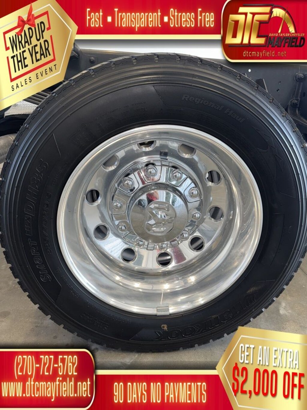 - Wheels: 19.5" x 6.0" Black Painted Steel