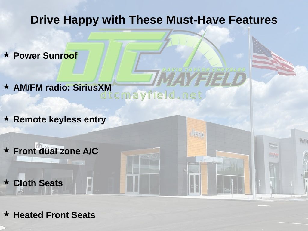 115V Auxiliary Power Outlet, 3rd Row Charge-Only USB Ports, AM/FM radio: SiriusXM, Capri Leatherette/Suede Seats, Cloth Seats, Front dual zone A/C, Heated Front Seats, Heated Steering Wheel, ParkView Rear Back-Up Camera, Power Liftgate, Power Sunroof, Quick Order Package 23M Altitude X, Remote keyless entry, Wireless Charging Pad, 3.45 Rear Axle Ratio, 3rd row seats: split-bench, 4-Wheel Disc Brakes, 6 Speakers, ABS brakes, Air Conditioning, Alloy wheels, Altitude X, Anti-whiplash front head restraints, Automatic temperature control, Black Headliner, Brake assist, Bumpers: body-color, Compass, Delay-off headlights, Delete Laredo Badge, Driver door bin, Driver vanity mirror, Dual front impact airbags, Dual front side impact airbags, Electronic Stability Control, Emergency communication system, Four wheel independent suspension, Front anti-roll bar, Front Bucket Seats, Front Center Armrest w/Storage, Front License Plate Bracket, Front reading lights, Fully automatic headlights, Gloss Black Exterior Accents, Heated door mirrors, Illuminated entry, Knee airbag, Low tire pressure warning, Manual Fold Seatbacks, Model Year Tracking, Normal Duty Suspension, Occupant sensing airbag, Outside temperature display, Overhead airbag, Overhead console, Panic alarm, Passenger door bin, Passenger vanity mirror, Power door mirrors, Power driver seat, Power steering, Power windows, Radio data system, Rain Sensitive Windshield Wipers, Rear air conditioning, Rear anti-roll bar, Rear reading lights, Rear window defroster, Rear window wiper, Reclining 3rd row seat, Remote Start System, Security system, Selectable Tire Fill Alert, Speed control, Speed-Sensitive Wipers, Split folding rear seat, Spoiler, Steering wheel mounted audio controls, Tachometer, Telescoping steering wheel, Tilt steering wheel, Traction control, Trip computer, Variably intermittent wipers, Voltmeter, Wheels: 18" x 8.0" Fully Painted Aluminum, Wheels: 18" x 8.0" Fully Painted Aluminum 1, Wheels: 20" x 8.5" Gloss Black Painted Aluminum, 115V Auxiliary Power Outlet, 3rd Row Charge-Only USB Ports, AM/FM radio: SiriusXM, Capri Leatherette/Suede Seats, Cloth Seats, Front dual zone A/C, Heated Front Seats, Heated Steering Wheel, ParkView Rear Back-Up Camera, Power Liftgate, Power Sunroof, Quick Order Package 23M Altitude X, Remote keyless entry, Wireless Charging Pad. Price does not include Tax, Title, or License fees. Price may include Manufacturer Rebates and Incentives. Buyer must meet certain conditions to qualify when applicable. $1000 - Driveability / Automobility Program. Exp. 01/05/2026 $1500 - 2025 National Stellantis Loyalty Retail Bonus Cash . Exp. 01/05/2026 $2500 - 2025 National Retail Bonus Cash . Exp. 01/05/2026 $500 - 2025 National 2025 First Responder Bonus Cash. Exp. 01/05/2026 $500 - 2025 South BC Retail Bonus Cash . Exp. 01/05/2026