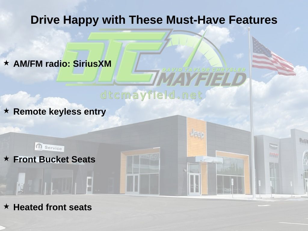 10.1" Touchscreen Display, 17" x 7" Aluminum Wheels, 4G LTE Wi-Fi Hot Spot, AM/FM radio: SiriusXM, Auto High-beam Headlights, Front Bucket Seats, Front fog lights, Heated front seats, Heated steering wheel, ParkView Rear Back-Up Camera, Remote keyless entry, 3.73 Final Drive Ratio, 4-Wheel Disc Brakes, 6 Speakers, ABS brakes, Air Conditioning, Altitude Special Edition, Automatic temperature control, Black Day Light Opening Moldings, Bluetooth Handsfree Phone and Audio, Brake assist, Bumpers: body-color, Compass, Delay-off headlights, Driver door bin, Driver vanity mirror, Dual front impact airbags, Dual front side impact airbags, Electronic Stability Control, Emergency communication system: SiriusXM Guardian, Four wheel independent suspension, Front anti-roll bar, Front Center Armrest w/Storage, Front reading lights, Fully automatic headlights, Global Telematics Box Module, Gloss Black Surround/Neutral Gray Rings, Heated door mirrors, Illuminated entry, Knee airbag, Leather Shift Knob, Leather steering wheel, Low tire pressure warning, MyFlexCare Service Plan, Neutral Gray Exterior Badging, Occupant sensing airbag, Outside temperature display, Overhead airbag, Overhead console, Panic alarm, Passenger door bin, Passenger vanity mirror, Piano Black Interior Accents, Power door mirrors, Power steering, Power windows, Premium audio system: UConnect 5, Premium Cloth/Vinyl Bucket Seats, Quick Order Package 29N Altitude, Radio: Uconnect 5 with 8.4" Display, Rear anti-roll bar, Rear seat center armrest, Rear window defroster, Rear window wiper, Security system, SiriusXM Satellite Radio, Sliding Sun Visors with Illuminated Mirrors, Speed control, Split folding rear seat, Spoiler, Steering wheel mounted audio controls, Tachometer, Telescoping steering wheel, Tilt steering wheel, Traction control, Trip computer, Variably intermittent wipers, Wheels: 18" x 7" Gloss Black Painted Aluminum, Wheels: 19" x 7.5" Aluminum Painted, 10.1" Touchscreen Display, 17" x 7" Aluminum Wheels, 4G LTE Wi-Fi Hot Spot, AM/FM radio: SiriusXM, Auto High-beam Headlights, Front Bucket Seats, Front fog lights, Heated front seats, Heated steering wheel, ParkView Rear Back-Up Camera, Remote keyless entry. Price does not include Tax, Title, or License fees. Price may include Manufacturer Rebates and Incentives. Buyer must meet certain conditions to qualify when applicable. $1000 - 2026 National Retail Bonus Cash . Exp. 03/02/2026 $1000 - 2026 National Stellantis Loyalty Bonus Cash . Exp. 03/02/2026 $1500 - 2026 National SFS Lease Loyalty Bonus Cash . Exp. 03/02/2026 $500 - 2026 Great Lakes BC Bonus Cash . Exp. 03/02/2026 $500 - 2026 National 2026 First Responder Bonus Cash . Exp. 01/04/2027
