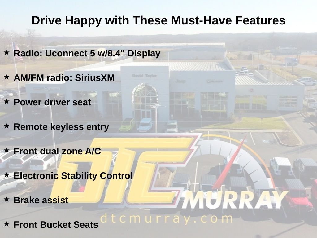 4WD, AM/FM radio: SiriusXM, Brake assist, Electronic Stability Control, Front Bucket Seats, Front dual zone A/C, Illuminated entry, ParkView Rear Back-Up Camera, Power driver seat, Remote keyless entry, Wheels: 17" x 6.5" Fully Painted Aluminum, 4-Wheel Disc Brakes, 6 Speakers, ABS brakes, Air Conditioning, Alloy wheels, Anti-whiplash front head restraints, Automatic temperature control, Bumpers: body-color, Cloth Seats, Compass, Delay-off headlights, Driver door bin, Driver vanity mirror, Dual front impact airbags, Dual front side impact airbags, Emergency communication system, Four wheel independent suspension, Front anti-roll bar, Front Center Armrest w/Storage, Front reading lights, Fully automatic headlights, Heated door mirrors, Knee airbag, Low tire pressure warning, Normal Duty Suspension, Occupant sensing airbag, Outside temperature display, Overhead airbag, Overhead console, Panic alarm, Passenger door bin, Passenger vanity mirror, Power door mirrors, Power steering, Power windows, Radio data system, Rear anti-roll bar, Rear reading lights, Rear window defroster, Rear window wiper, Security system, Speed control, Speed-Sensitive Wipers, Split folding rear seat, Spoiler, Steering wheel mounted audio controls, Tachometer, Telescoping steering wheel, Tilt steering wheel, Traction control, Trip computer, Variably intermittent wipers, Voltmeter, 4WD, AM/FM radio: SiriusXM, Brake assist, Electronic Stability Control, Front Bucket Seats, Front dual zone A/C, Illuminated entry, ParkView Rear Back-Up Camera, Power driver seat, Remote keyless entry, Wheels: 17" x 6.5" Fully Painted Aluminum. Price does not include Tax, Title, or License fees. Price may include Manufacturer Rebates and Incentives. Buyer must meet certain conditions to qualify when applicable. $2250 - 2025 National Retail Bonus Cash . Exp. 01/05/2026 $500 - 2025 South BC Retail Bonus Cash . Exp. 01/05/2026