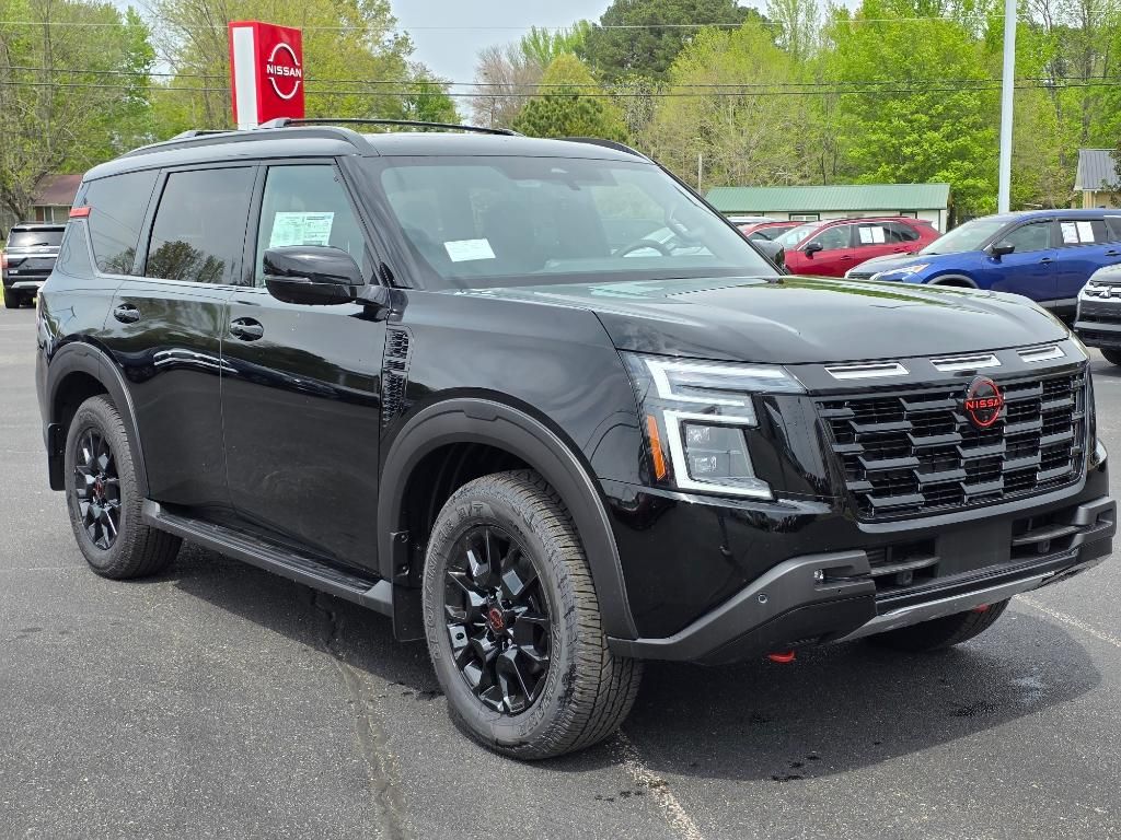 This model comes equipped with Android Auto for seamless smartphone integration on the road. The leather seats in the vehicle are a must for buyers looking for comfort, durability, and style. This 1/2 ton suv's Forward Collision Warning system alerts the driver to potential front-end collisions, enhancing safety. This Nissan Armada is pure luxury with a heated steering wheel. See what's behind you with the back up camera on this model. The vehicle features a hands-free Bluetooth phone system. The installed navigation system will keep you on the right path. This 2025 Nissan Armada offers Apple CarPlay for seamless connectivity. This model has a V6, 3.5L high output engine. Maintaining a stable interior temperature in this vehicle is easy with the climate control system. The vehicle is painted with a sleek and sophisticated black color. When you encounter slick or muddy roads, you can engage the four wheel drive on this 1/2 ton suv and drive with confidence.