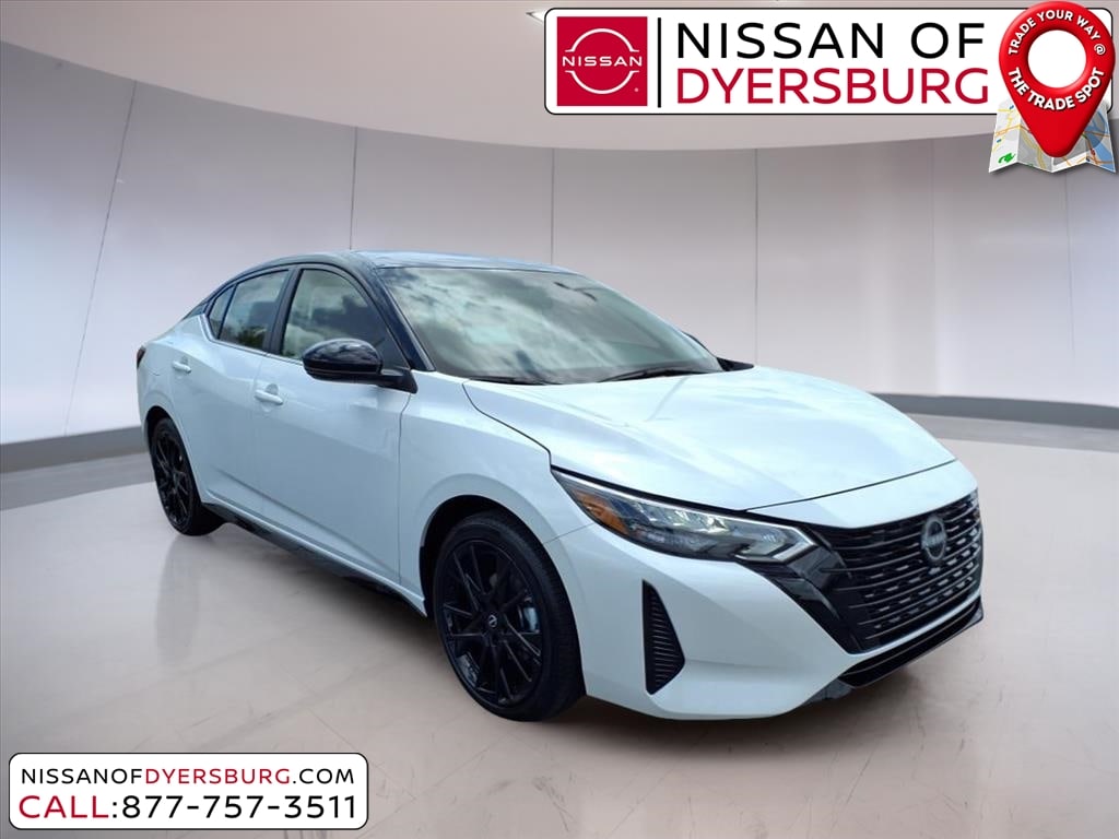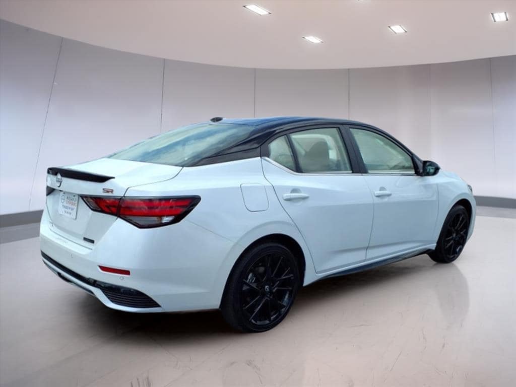 Aspen White/Super Black 2025 Nissan Sentra SR FWD CVT with Xtronic 2.0L I4 DOHC CVT with Xtronic, Sport Cloth, 18" Black Alloy Wheels, AM/FM radio: SiriusXM, Auto High-beam Headlights, Blind Spot Warning, Front dual zone A/C, Heated Front Bucket Seats, Midnight Edition, NissanConnect featuring Apple CarPlay and Android Auto, Remote keyless entry, Sport Cloth Seat Trim, 18" Alloy Wheels, 2-Tone Premium Paint, 4-Wheel Disc Brakes, 8 Speakers, ABS brakes, Air Conditioning, Alloy wheels, Automatic temperature control, Black Exterior Badging, Black Painted V-Motion Grille, Brake assist, Bumpers: body-color, Clear Rear Bumper Protector, Delay-off headlights, Door Sill Plates, Driver door bin, Driver vanity mirror, Dual front impact airbags, Dual front side impact airbags, Electronic Stability Control, Four wheel independent suspension, Front anti-roll bar, Front Bucket Seats, Front Center Armrest, Front reading lights, Fully automatic headlights, Heated door mirrors, Heated front seats, Illuminated entry, Knee airbag, Leather Shift Knob, Low tire pressure warning, Occupant sensing airbag, Outside temperature display, Overhead airbag, Overhead console, Panic alarm, Passenger door bin, Passenger vanity mirror, Power door mirrors, Power steering, Power windows, Radio data system, Rear anti-roll bar, Rear Parking Sensors, Rear seat center armrest, Rear side impact airbag, Rear Spoiler, Rear window defroster, Security system, Side Sills, Speed control, Speed-sensing steering, Split folding rear seat, Spoiler, Steering wheel mounted audio controls, Tachometer, Telescoping steering wheel, Tilt steering wheel, Traction control, Trip computer, Turn signal indicator mirrors, Variably intermittent wipers, CVT with Xtronic, Sport Cloth, 18" Black Alloy Wheels, AM/FM radio: SiriusXM, Auto High-beam Headlights, Blind Spot Warning, Front dual zone A/C, Heated Front Bucket Seats, Midnight Edition, NissanConnect featuring Apple CarPlay and Android Auto, Remote keyless entry, Sport Cloth Seat Trim.