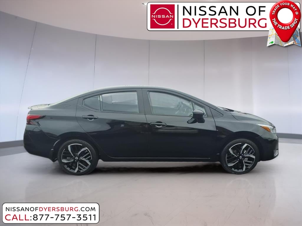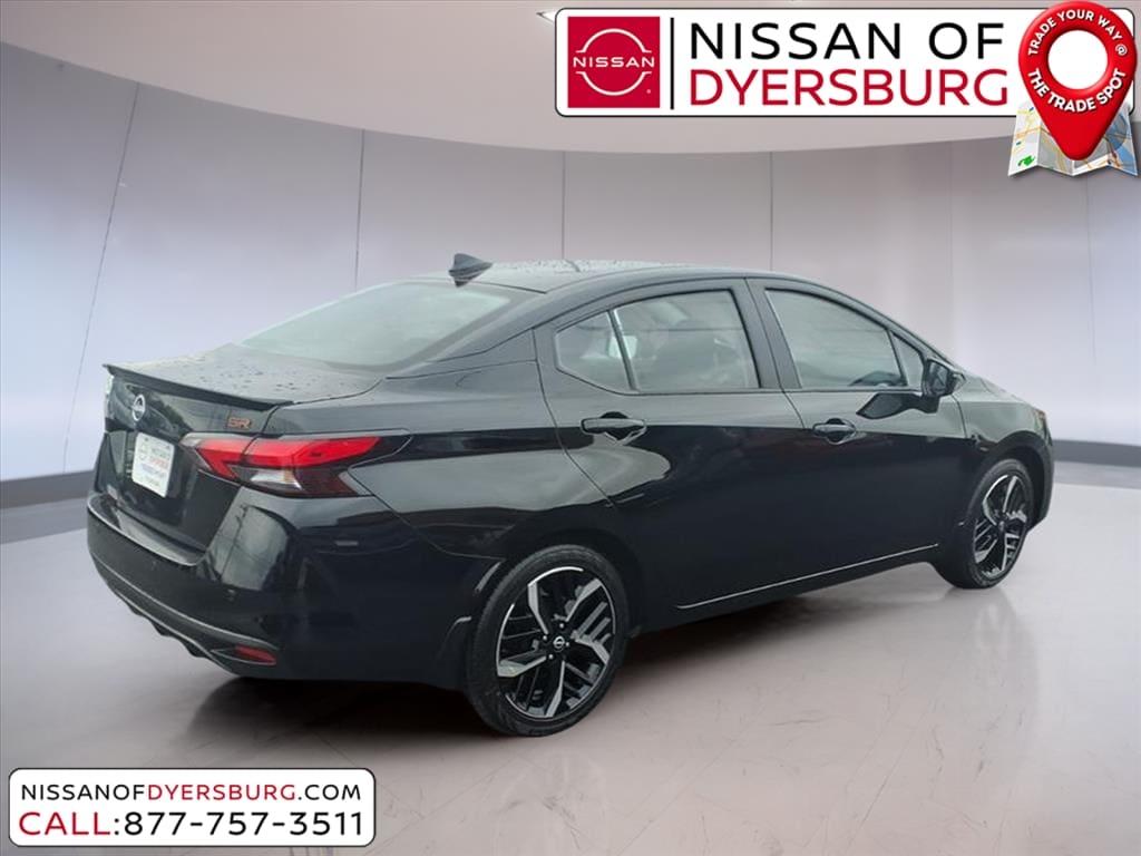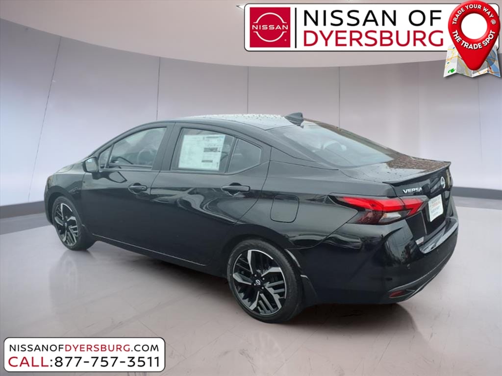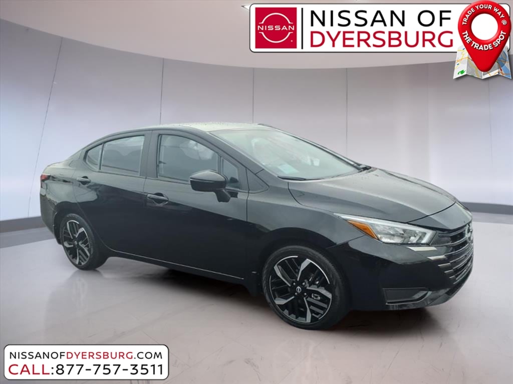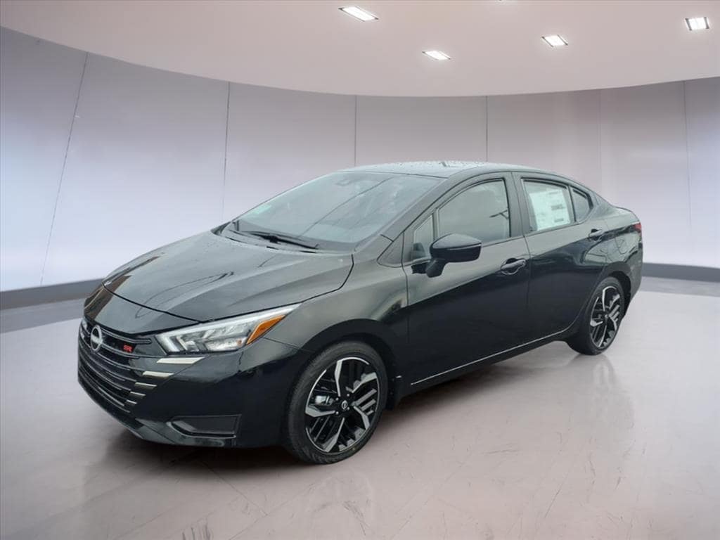 Super Black Metallic 2025 Nissan Versa 1.6 SR FWD CVT 1.6L I4 DOHC 16V 17" Aluminum Alloy Wheels, Air Conditioning, AM/FM radio: SiriusXM, Apple CarPlay/Android Auto, Auto High-beam Headlights, Blind Spot Warning, Front Bucket Seats, Rear Parking Sensors, Remote keyless entry, SR Fabric Seat Trim, 6 Speakers, ABS brakes, Alloy wheels, Automatic temperature control, Brake assist, Bumpers: body-color, Carpeted Floor Mats & Trunk Mat (5-Piece Set), Delay-off headlights, Driver door bin, Driver vanity mirror, Dual front impact airbags, Dual front side impact airbags, Electronic Stability Control, Emergency communication system, Front anti-roll bar, Front Center Armrest, Front reading lights, Front wheel independent suspension, Fully automatic headlights, Heated door mirrors, Heated Front Bucket Seats, Heated front seats, Illuminated entry, Knee airbag, Leather steering wheel, Low tire pressure warning, Occupant sensing airbag, Outside temperature display, Overhead airbag, Panic alarm, Passenger door bin, Passenger vanity mirror, Power door mirrors, Power steering, Power windows, Radio data system, Radio: AM/FM Audio System, Rear side impact airbag, Rear window defroster, Shopping Bag Hooks, Speed control, Splash Guards, Split folding rear seat, Spoiler, Steering wheel mounted audio controls, Tachometer, Telescoping steering wheel, Tilt steering wheel, Traction control, Trip computer, Trunk Net, Trunk Package, Turn signal indicator mirrors, Variably intermittent wipers, 17" Aluminum Alloy Wheels, Air Conditioning, AM/FM radio: SiriusXM, Apple CarPlay/Android Auto, Auto High-beam Headlights, Blind Spot Warning, Front Bucket Seats, Rear Parking Sensors, Remote keyless entry, SR Fabric Seat Trim.