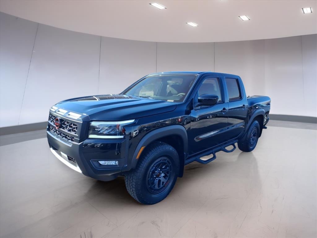 Super Black 2026 Nissan Frontier PRO-4X 4WD 9-Speed Automatic with Overdrive 3.8L DI DOHC 24V V6 4WD, AM/FM radio: SiriusXM, Auto High-beam Headlights, Blind Spot Warning, Front dual zone A/C, Front fog lights, Heated Front Bucket Seats, Heated steering wheel, Power driver seat, PRO Embroidered Premium Cloth Seat Trim, Remote keyless entry, Wireless Apple CarPlay/Wireless Android Auto, 17" Painted Alloy Wheels, 3.692 Axle Ratio, 4-Wheel Disc Brakes, 6 Speakers, ABS brakes, Air Conditioning, Alloy wheels, Anti-whiplash front head restraints, Automatic temperature control, Brake assist, Bumpers: body-color, Delay-off headlights, Driver door bin, Driver vanity mirror, Drop-In Bed Liner & Bumper Step, Dual front impact airbags, Dual front side impact airbags, Electronic Stability Control, Emergency communication system, Essentials Kit, Front anti-roll bar, Front Bucket Seats, Front Center Armrest, Front reading lights, Front wheel independent suspension, Fully automatic headlights, Heated front seats, Illuminated entry, Knee airbag, Leather steering wheel, Low tire pressure warning, Mud Flaps, Occupant sensing airbag, Off-Road Style Step Rails, Overhead airbag, Overhead console, Panic alarm, Passenger door bin, Passenger vanity mirror, Power door mirrors, Power passenger seat, Power steering, Power windows, PRO-4X Carpeted Floor Mats, Radio data system, Radio: SXM/AM/FM/AUX/USB Audio System, Rear anti-roll bar, Rear seat center armrest, Rear side impact airbag, Rear step bumper, Security system, Speed control, Speed-sensing steering, Split folding rear seat, Steering wheel mounted audio controls, Tachometer, Telescoping steering wheel, Tilt steering wheel, Tow Package, Traction control, Trip computer, Variably intermittent wipers, Voltmeter, 4WD, AM/FM radio: SiriusXM, Auto High-beam Headlights, Blind Spot Warning, Front dual zone A/C, Front fog lights, Heated Front Bucket Seats, Heated steering wheel, Power driver seat, PRO Embroidered Premium Cloth Seat Trim, Remote keyless entry, Wireless Apple CarPlay/Wireless Android Auto.