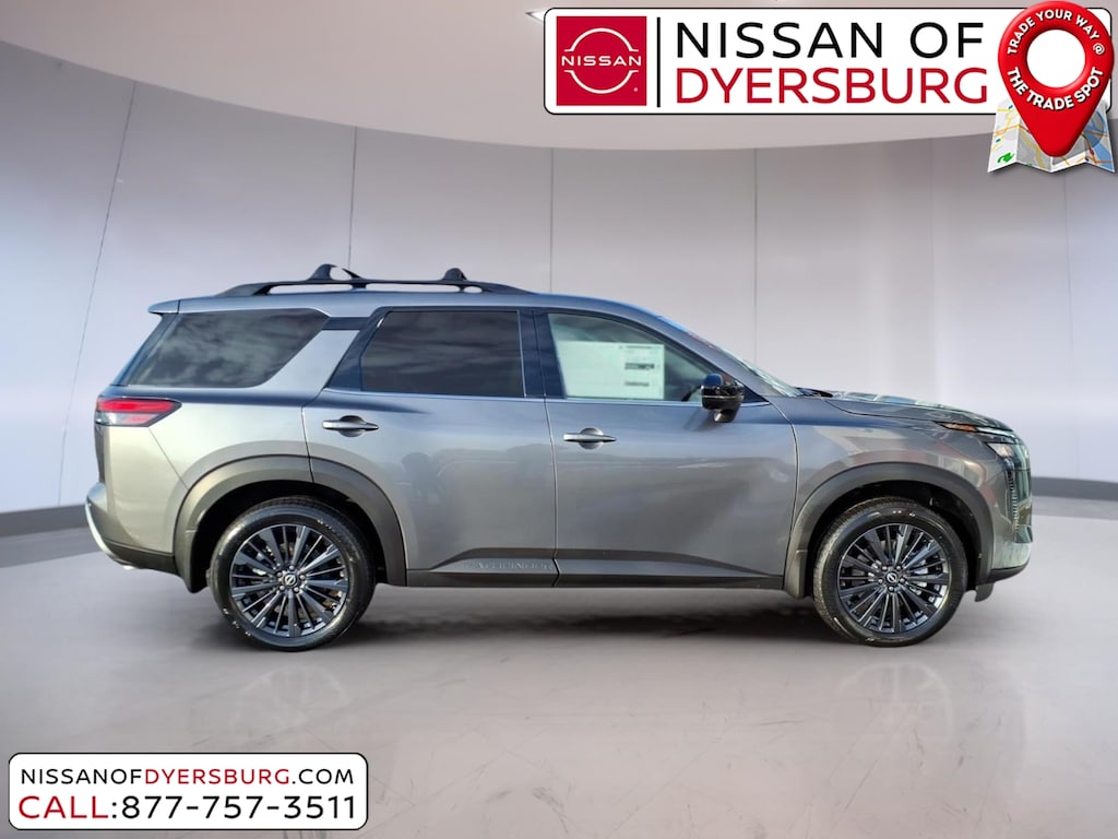 Gun Metallic 2026 Nissan Pathfinder SL FWD 9-Speed Automatic 3.5L V6 DOHC 18" Machined Alloy Wheels, 2nd Row Manual Sunshades, 2nd-Row Captain Chairs, 3rd row seats: bench, 4-Piece Black Splash Guards, 4-Wheel Disc Brakes, 6 Speakers, ABS brakes, Air Conditioning, Alloy wheels, AM/FM radio: SiriusXM w/360L, Auto High-beam Headlights, Auto-dimming Rear-View mirror, Automatic temperature control, Bose Premium Audio System, Brake assist, Bumpers: body-color, Captain's Chairs Carpeted Floor Mats, Cross Bars, Delay-off headlights, Driver door bin, Driver vanity mirror, Dual front impact airbags, Dual front side impact airbags, Electronic Stability Control, Emergency communication system: NissanConnect Services, Four wheel independent suspension, Front anti-roll bar, Front Bucket Seats, Front Center Armrest, Front dual zone A/C, Front reading lights, Fully automatic headlights, Garage door transmitter: HomeLink, Heated door mirrors, Heated Front Bucket Seats, Heated front seats, Heated Rear Seats, Heated steering wheel, Illuminated entry, Knee airbag, Low tire pressure warning, NissanConnect featuring Apple CarPlay and Android Auto, Occupant sensing airbag, Outside temperature display, Overhead airbag, Overhead console, Panic alarm, Panoramic Moonroof, Passenger door bin, Passenger vanity mirror, Power door mirrors, Power driver seat, Power Liftgate, Power steering, Power windows, Radio data system, Radio: AM/FM Audio System with NissanConnect, Rear air conditioning, Rear anti-roll bar, Rear reading lights, Rear seat center armrest, Rear side impact airbag, Rear window defroster, Rear window wiper, Reclining 3rd row seat, Remote keyless entry, Removable Center Console, Security system, SL Premium Package, Speed control, Speed-sensing steering, Split folding rear seat, Spoiler, Steering wheel mounted audio controls, Tachometer, TailorFit Appointed Seating Surfaces, Telescoping steering wheel, Tilt steering wheel, Tow Hitch Receiver and Harness, Traction control, Trip computer, Turn signal indicator mirrors, Variably intermittent wipers, Wheels: 20" Machined Alloy with Dark Metallic Gray Finish.