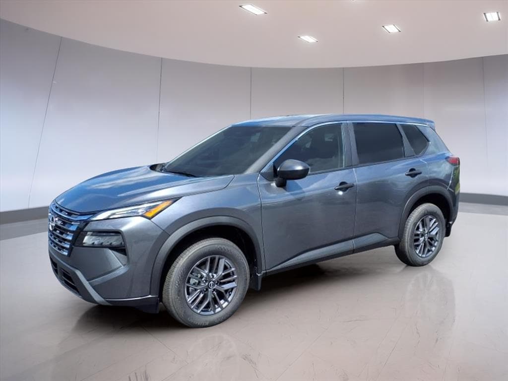 Gun Metallic 2026 Nissan Rogue S AWD CVT with Xtronic 1.5L DOHC AWD, 17" Alloy Wheels, 4 Speakers, 4-Wheel Disc Brakes, ABS brakes, Air Conditioning, Alloy wheels, AM/FM radio: Sirius, Apple CarPlay/Android Auto, Auto High-beam Headlights, Black Splash Guards (set of 4), Blind Spot Warning, Brake assist, Bumpers: body-color, Cloth Seat Trim, Delay-off headlights, Driver door bin, Driver vanity mirror, Dual front impact airbags, Dual front side impact airbags, Electronic Stability Control, First Aid Kit, Floor Mats with 1-Piece Cargo Area Protector, Four wheel independent suspension, Front anti-roll bar, Front Bucket Seats, Front Center Armrest, Front reading lights, Fully automatic headlights, Illuminated entry, Knee airbag, Low tire pressure warning, Occupant sensing airbag, Outside temperature display, Overhead airbag, Overhead console, Panic alarm, Passenger door bin, Passenger vanity mirror, Power door mirrors, Power steering, Power windows, Radio data system, Radio: AM/FM NissanConnect, Rear anti-roll bar, Rear seat center armrest, Rear side impact airbag, Rear window defroster, Rear window wiper, Remote keyless entry, Retractable Cargo Cover, Speed control, Speed-sensing steering, Speed-Sensitive Wipers, Split folding rear seat, Spoiler, Steering wheel mounted audio controls, Tachometer, Telescoping steering wheel, Tilt steering wheel, Traction control, Trip computer, Variably intermittent wipers, AWD.