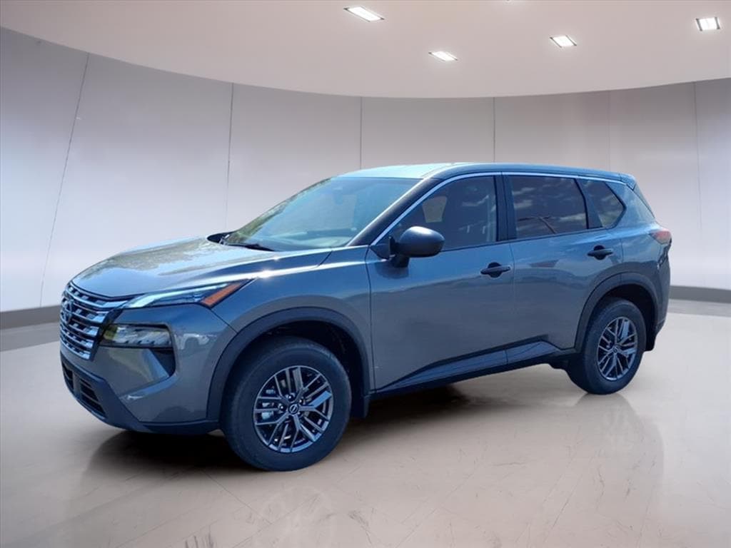 Gun Metallic 2026 Nissan Rogue S FWD CVT with Xtronic 1.5L DOHC 17" Alloy Wheels, Apple CarPlay/Android Auto, Auto High-beam Headlights, Blind Spot Warning, Brake assist, Electronic Stability Control, Front Bucket Seats, Illuminated entry, Remote keyless entry, 4 Speakers, 4-Wheel Disc Brakes, ABS brakes, Air Conditioning, Alloy wheels, Black Splash Guards (Set of 4) (B92), Bumpers: body-color, Cloth Seat Trim, Delay-off headlights, Driver door bin, Driver vanity mirror, Dual front impact airbags, Dual front side impact airbags, First Aid Kit, Floor Mats w/1-Piece Cargo Area Protector, Four wheel independent suspension, Front anti-roll bar, Front Center Armrest, Front reading lights, Fully automatic headlights, Knee airbag, Low tire pressure warning, Occupant sensing airbag, Outside temperature display, Overhead airbag, Overhead console, Panic alarm, Passenger door bin, Passenger vanity mirror, Power door mirrors, Power steering, Power windows, Radio data system, Radio: AM/FM NissanConnect, Rear anti-roll bar, Rear seat center armrest, Rear side impact airbag, Rear window defroster, Rear window wiper, Speed control, Speed-sensing steering, Speed-Sensitive Wipers, Split folding rear seat, Spoiler, Steering wheel mounted audio controls, Tachometer, Telescoping steering wheel, Tilt steering wheel, Traction control, Trip computer, Variably intermittent wipers, 17" Alloy Wheels, Apple CarPlay/Android Auto, Auto High-beam Headlights, Blind Spot Warning, Brake assist, Electronic Stability Control, Front Bucket Seats, Illuminated entry, Remote keyless entry.