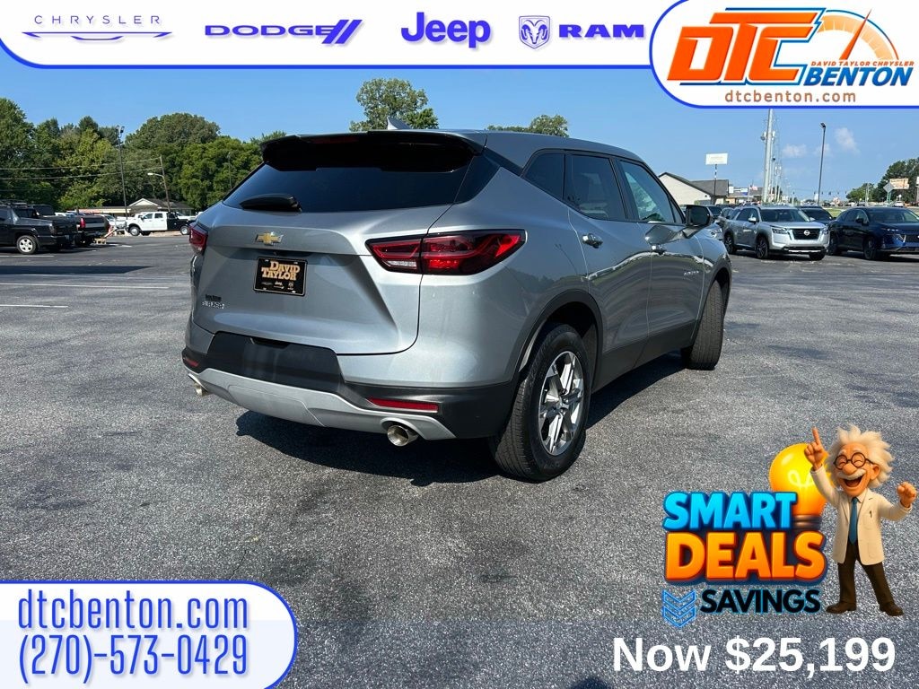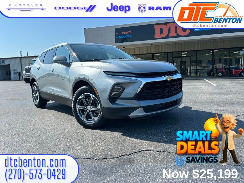 Sterling Metallic 2023 Chevrolet Blazer LT FWD 9-Speed Automatic with Overdrive 2.0L Turbocharged AM/FM radio: SiriusXM with 360L, Apple CarPlay/Android Auto, Auto High-beam Headlights, Floor Liner Package (LPO), Front Bucket Seats, Front dual zone A/C, Hitch Guidance, Preferred Equipment Group 2LT, Premium Cloth Seat Trim, Remote keyless entry, Trailering Equipment, Wheels: 18" Grazen Metallic Aluminum.