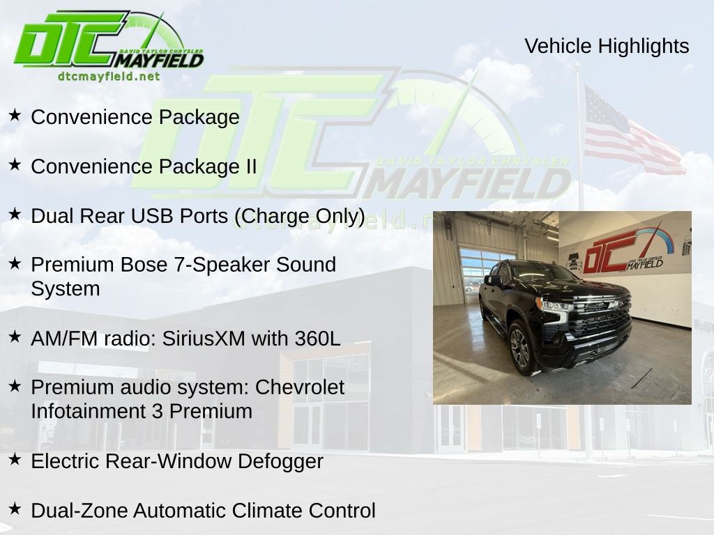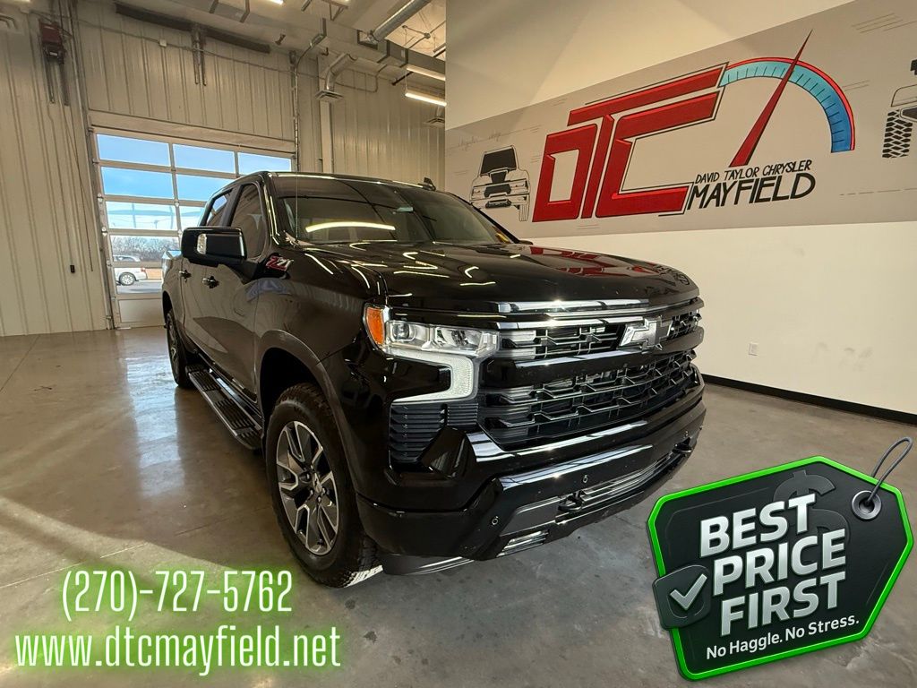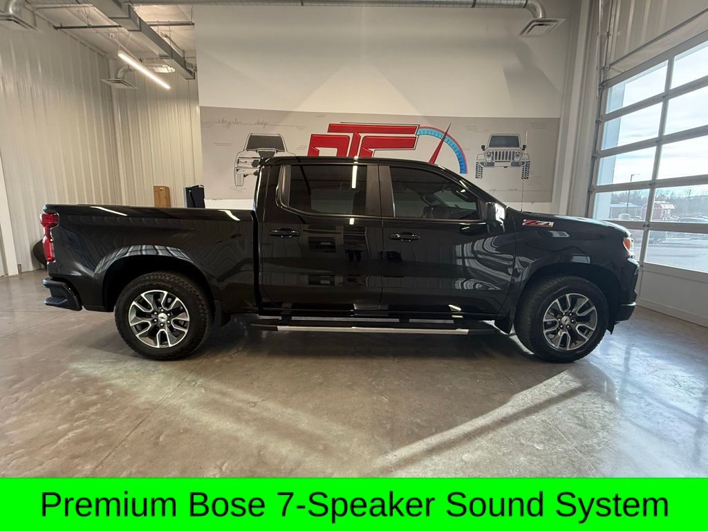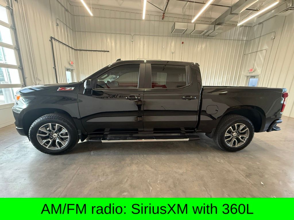 Silverado 1500 RST, EcoTec3 5.3L V8, 8-Speed Automatic, 4WD, 10-Way Power Driver Seat w/Lumbar, 120-Volt Interior Power Outlet, AM/FM radio: SiriusXM with 360L, Apple CarPlay/Android Auto, Convenience Package, Convenience Package II, Dual Rear USB Ports (Charge Only), Dual-Zone Automatic Climate Control, Electric Rear-Window Defogger, Heated Driver & Front Outboard Passenger Seats, Heated Steering Wheel, Hitch Guidance w/Hitch View, In-Vehicle Trailering System App, Keyless Open & Start, Lane Keep Assist w/Lane Departure Warning, LED Cargo Area Lighting, Manual Tilt/Telescoping Steering Column, Power Sliding Rear Window w/Rear Defogger, Premium audio system: Chevrolet Infotainment 3 Premium, Premium Bose 7-Speaker Sound System, Remote keyless entry, Remote Vehicle Starter System, Theft Deterrent System (Unauthorized Entry), Universal Home Remote, Wi-Fi Hot Spot Capable, Wireless Charging, Wrapped Steering Wheel, 12.3" Multicolor Reconfigurable Digital Display, 120-Volt Bed Mounted Power Outlet, 170 Amp Alternator, 2 USB Data Ports, 220 Amp Alternator, 3.23 Rear Axle Ratio, 4-Wheel Disc Brakes, 40/20/40 Front Split-Bench Seat, 6 Speakers, 6-Speaker Audio System, ABS brakes, Air Conditioning, All-Star Edition, All-Weather Floor Liner (LPO) (AAK), Alloy wheels, Auto High-beam Headlights, Auto-Locking Rear Differential, Automatic Emergency Braking, Automatic temperature control, Auxiliary External Transmission Oil Cooler, Bluetooth® For Phone, Brake assist, Bumpers: body-color, Chevytec Spray-On Black Bedliner, Cloth Seat Trim, Color-Keyed Carpeting Floor Covering, Compass, Deep-Tinted Glass, Delay-off headlights, Driver door bin, Driver vanity mirror, Dual Exhaust w/Black Exhaust Tips, Dual Exhaust w/Polished Outlets, Dual front impact airbags, Dual front side impact airbags, Electronic Cruise Control, Electronic Stability Control, Electronic Transmission Range Selector Shifter, Emergency communication system: OnStar, External Engine Oil Cooler, EZ Lift Power Lock & Release Tailgate, Floor Mounted Center Console, Following Distance Indicator, Forward Collision Alert, Front anti-roll bar, Front Bucket Seats, Front Center Armrest w/Storage, Front dual zone A/C, Front fog lights, Front Frame-Mounted Black Recovery Hooks, Front LED Fog Lamps, Front Pedestrian Braking, Front reading lights, Front Rubberized Vinyl Floor Mats, Front wheel independent suspension, Fully automatic headlights, HD Rear Vision Camera, HD Surround Vision, Heated door mirrors, Heated front seats, Heated Power-Adjustable Outside Mirrors, Heated steering wheel, Heavy-Duty Air Filter, High Gloss Black Mirror Caps, Hill Descent Control, Hitch Guidance, Illuminated entry, Inside Rear-View Mirror w/Tilt, Integrated Trailer Brake Controller, IntelliBeam Automatic High Beam On/Off, Low tire pressure warning, Multi-Flex Tailgate, Occupant sensing airbag, OnStar Services Capable, Outside temperature display, Overhead airbag, Overhead console, Panic alarm, Passenger door bin, Passenger vanity mirror, Perimeter Lighting, Power door mirrors, Power driver seat, Power Front Windows w/Driver Express Up/Down, Power Front Windows w/Passenger Express Down, Power Rear Windows w/Express Down, Power steering, Power windows, Preferred Equipment Group 1SP, Protection Package, Radio data system, Radio: Chevrolet Infotainment 3 Premium System, Rear 60/40 Folding Bench Seat (Folds Up), Rear Cross Traffic Braking, Rear Pedestrian Alert, Rear reading lights, Rear Rubberized-Vinyl Floor Mats, Rear step bumper, Rear Wheelhouse Liners, Rear window defroster, Safety Package, Security system, Single Outlet Exhaust, SiriusXM w/360L Trial Subscription, Speed control, Speed-sensing steering, Split folding rear seat, Standard Suspension Package, Standard Tailgate, Steering Wheel Audio Controls, Steering wheel mounted audio controls, Tachometer, Teen Driver, Telescoping steering wheel, Tilt steering wheel, Tire Pressur