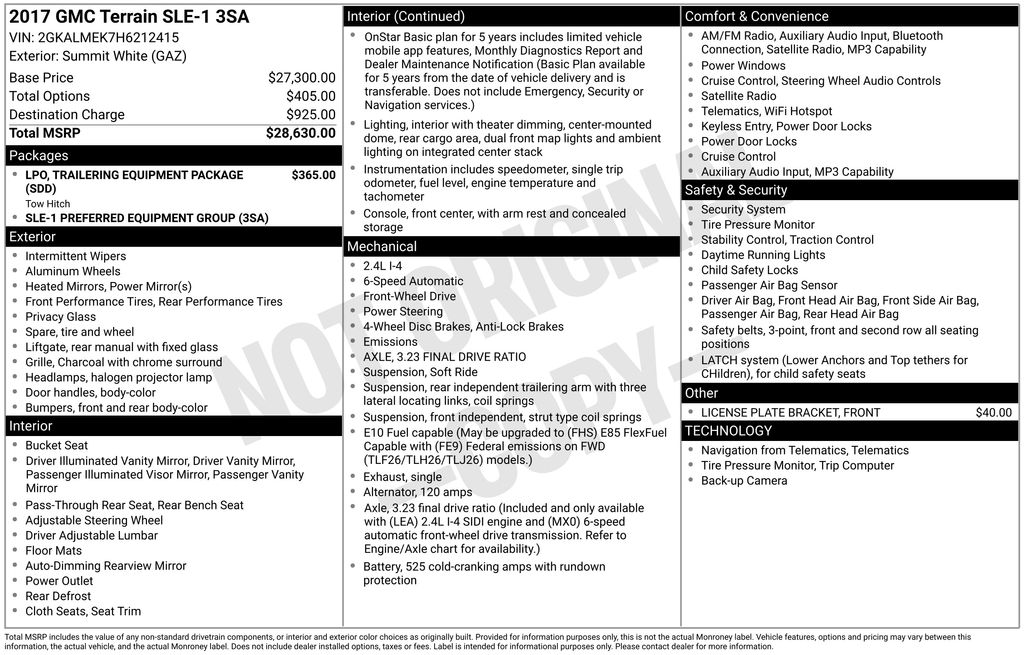 2017 GMC Terrain SLE-1 FWD 6-Speed Automatic 2.4L 4-Cylinder SIDI DOHC VVT Summit White