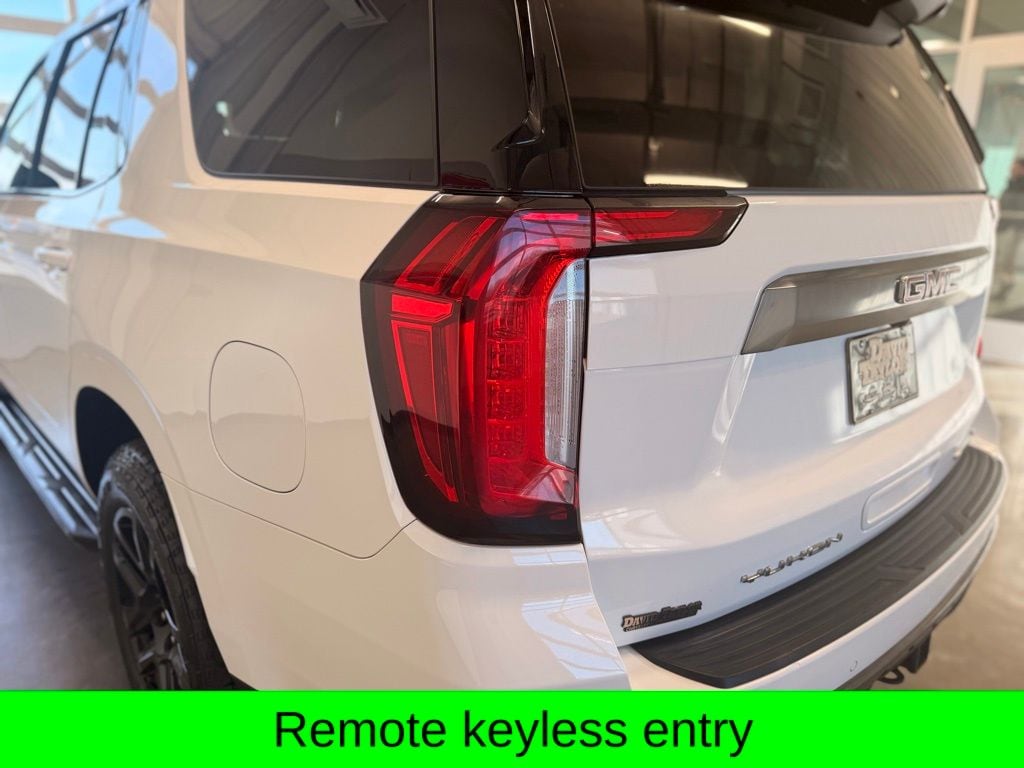 AM/FM radio: SiriusXM with 360L, Apple CarPlay/Android Auto, Bose 9-Speaker Stereo Audio System Feature, Front dual zone A/C, Front fog lights, Heated & Ventilated Driver & Front Passenger Seats, Heated steering wheel, Memory seat, Perforated Leather Seating Surfaces, Power Liftgate, Remote keyless entry, Wheels: 20" x 9" 6-Spoke Machined Aluminum, 12-Way Power Seat Adjusters, 2 Presets For Outside Rearview Mirrors, 3.23 Rear Axle Ratio, 3rd Row 60/40 Power-Folding Split-Bench Seat, 3rd row seats: split-bench, 4-Wheel Disc Brakes, 9 Speakers, ABS brakes, Adaptive suspension, Air Conditioning, Alloy wheels, Auto High-beam Headlights, Auto-dimming door mirrors, Auto-dimming Rear-View mirror, Auto-leveling suspension, Automatic Emergency Braking, Automatic temperature control, Black Roof-Mounted Luggage Rack Side Rails, Brake assist, Bright Front & Rear Door Sill Plates, Bumpers: body-color, Compass, Delay-off headlights, Driver door bin, Driver vanity mirror, Dual front impact airbags, Dual front side impact airbags, Electronic Stability Control, Emergency communication system: OnStar and GMC connected services capable, Following Distance Indicator, Forward Collision Alert, Four wheel independent suspension, Front anti-roll bar, Front Bucket Seats, Front Center Armrest, Front High-Approach Angle Fascia, Front Pedestrian Braking, Front reading lights, Fully automatic headlights, Garage door transmitter, Hands-Free Power Programmable Rear Liftgate, HD Radio, Heated 2nd Row Outboard Position Seats, Heated Automatic Steering Wheel, Heated door mirrors, Heated Driver & Front Passenger Seats, Heated front seats, Heated rear seats, Heavy-Duty Air Filter, Hill Descent Control, Illuminated entry, Inside Rear-View Auto-Dimming Mirror, IntelliBeam Automatic High Beam On/Off, Lane Change Alert w/Side Blind Zone Alert, Lane Keep Assist w/Lane Departure Warning, Leather steering wheel, Low tire pressure warning, Magnetic Ride Control Suspension, Occupant sensing airbag, Outside Heated Power-Adjustable Mirrors, Outside temperature display, Overhead airbag, Overhead console, Panic alarm, Passenger door bin, Passenger vanity mirror, Power door mirrors, Power driver seat, Power passenger seat, Power Release 2nd Row 60/40 Split-Folding Bench Seat, Power steering, Power Tilt & Telescopic Steering Column, Power windows, Radio: AM/FM/SiriusXM, Rain sensing wipers, Rear air conditioning, Rear anti-roll bar, Rear Cross Traffic Alert, Rear reading lights, Rear seat center armrest, Rear window defroster, Rear window wiper, Red Horizontal-Mounted Recovery Hooks, Roof rack: rails only, Security system, SiriusXM w/360L, Speed control, Speed-sensing steering, Split folding rear seat, Spoiler, Steering wheel memory, Steering wheel mounted audio controls, Tachometer, Telescoping steering wheel, Tilt steering wheel, Traction control, Trip computer, Turn signal indicator mirrors, Universal Home Remote, Variably intermittent wipers, Ventilated front seats, Voltmeter, AM/FM radio: SiriusXM with 360L, Apple CarPlay/Android Auto, Bose 9-Speaker Stereo Audio System Feature, Front dual zone A/C, Front fog lights, Heated & Ventilated Driver & Front Passenger Seats, Heated steering wheel, Memory seat, Perforated Leather Seating Surfaces, Power Liftgate, Remote keyless entry, Wheels: 20" x 9" 6-Spoke Machined Aluminum.