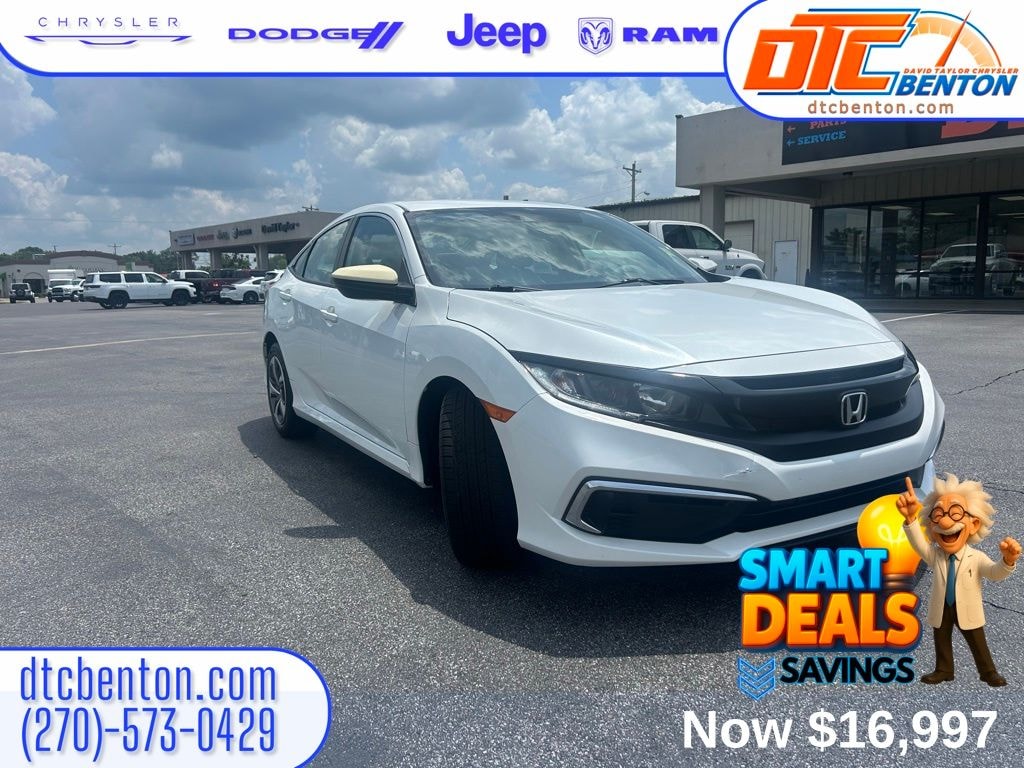 White Orchid Pearl 2019 Honda Civic LX FWD CVT 2.0L I4 DOHC 16V i-VTEC Ivory w/Cloth Seat Trim, 16" Wheels w/Full Covers, AM/FM radio, Auto High-beam Headlights, Brake assist, Cloth Seat Trim, Electronic Stability Control, Exterior Parking Camera Rear, Forward collision: Collision Mitigation Braking System (CMBS) + FCW mitigation, Front Bucket Seats, Lane departure: Lane Keeping Assist System (LKAS) active, Remote keyless entry.