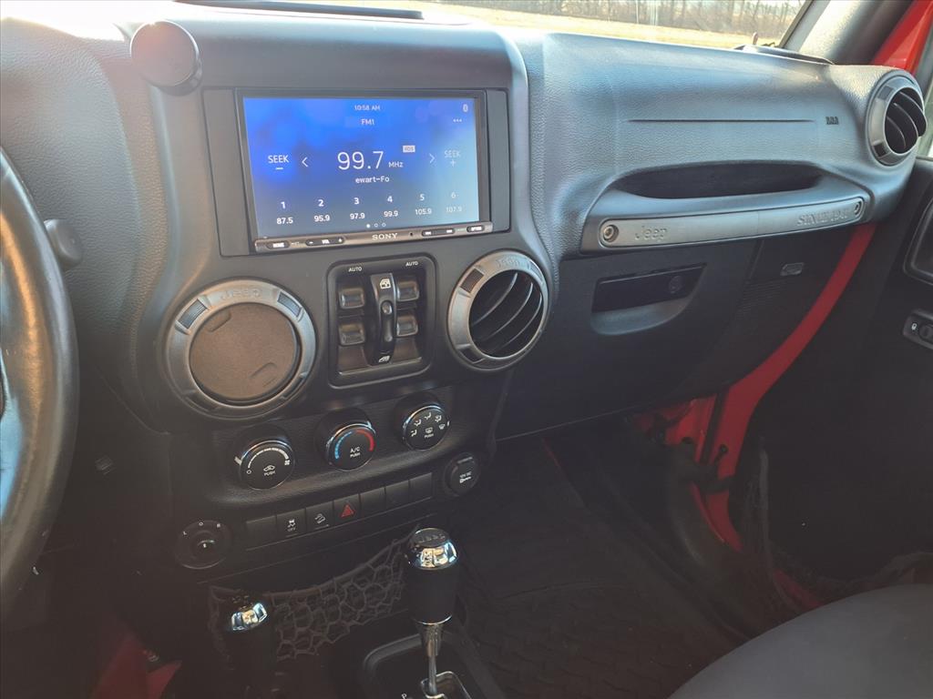 The Jeep Wrangler has a V6, 3.6L high output engine. When you encounter slick or muddy roads, you can engage the four wheel drive on this vehicle and drive with confidence. This unit gleams with a flashy red exterior. Quickly unlock this model with keyless entry. Maintaining a stable interior temperature in this mid-size suv is easy with the climate control system. It has an automatic transmission. This 2016 Jeep Wrangler features heated side mirrors keeping the ice off and your vision spot-on. Electronic Stability Control is one of many advanced safety features on this Jeep Wrangler. Enjoy the tried and true gasoline engine in this mid-size suv. This vehicle is equipped with front side curtain airbags. This model features cruise control for long trips. The vehicle has front air bags that will protect you and your passenger in the event of an accident. Anti-lock brakes will help you stop in an emergency.