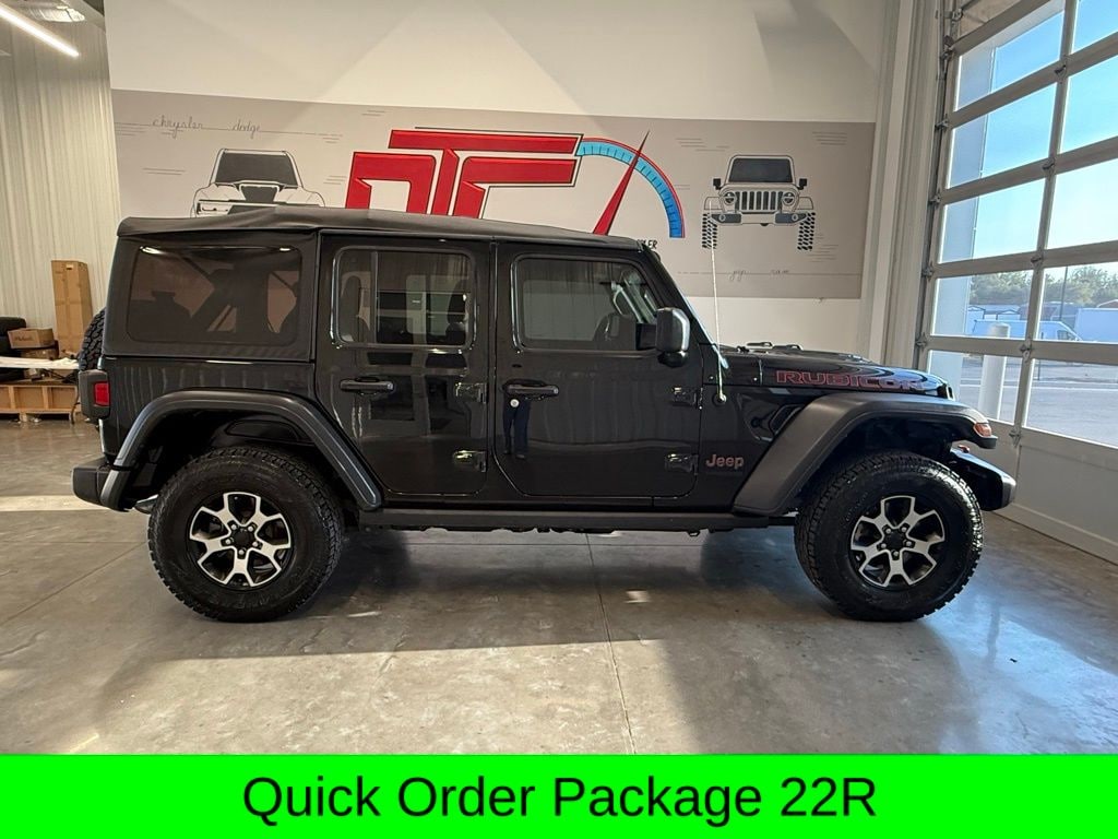 Wrangler Unlimited Rubicon, 2.0L I4 DOHC, 8-Speed Automatic, 4WD, AM/FM radio: SiriusXM, Apple CarPlay/Android Auto, Front dual zone A/C, Front fog lights, Illuminated entry, ParkView Rear Back-Up Camera, Premium Cloth Low-Back Bucket Seats, Quick Order Package 22R, Remote keyless entry, Wheels: 17" x 7.5" Machined w/Black Pockets, 4-Wheel Disc Brakes, 4.10 Rear Axle Ratio, 8 Speakers, ABS brakes, Air Conditioning, Alloy wheels, Automatic temperature control, Aux Battery, Brake assist, Compass, Delay-off headlights, Driver door bin, Driver vanity mirror, Dual front impact airbags, Dual front side impact airbags, Electronic Stability Control, Front anti-roll bar, Front Bucket Seats, Front Center Armrest w/Storage, Front License Plate Bracket, Front reading lights, Fully automatic headlights, Garage door transmitter, Heated door mirrors, Integrated roll-over protection, Leather steering wheel, Low tire pressure warning, Manufacturer's Statement of Origin, Non-Lock Fuel Cap w/o Discriminator, Occupant sensing airbag, Outside temperature display, Panic alarm, Passenger door bin, Passenger vanity mirror, Performance Suspension, Power door mirrors, Power steering, Power windows, Radio data system, Radio: Uconnect 4 w/7" Display, Rear anti-roll bar, Rear reading lights, Security system, Speed control, Split folding rear seat, Steering wheel mounted audio controls, Stop-Start Dual Battery System, Tachometer, Telescoping steering wheel, Tilt steering wheel, Traction control, Trip computer, Variably intermittent wipers, Voltmeter, Wrangler Unlimited Rubicon, 2.0L I4 DOHC, 8-Speed Automatic, 4WD, AM/FM radio: SiriusXM, Apple CarPlay/Android Auto, Front dual zone A/C, Front fog lights, Illuminated entry, ParkView Rear Back-Up Camera, Premium Cloth Low-Back Bucket Seats, Quick Order Package 22R, Remote keyless entry, Wheels: 17" x 7.5" Machined w/Black Pockets.