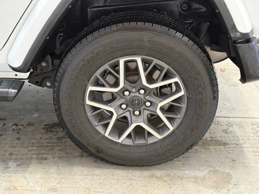 110 MPH Vehicle Max Speed Calibration, 12.3" Touchscreen Display, 3.45 Overall Top Gear Ratio, 4-Wheel Disc Brakes, 8 Speakers, ABS brakes, Air Conditioning, Alloy wheels, AM/FM radio: SiriusXM, Apple CarPlay, Apple CarPlay/Android Auto, Auto High Beam Headlamp Control, Automatic temperature control, Aux Battery, Blind Spot & Cross Path Detection, Body Color 3-Piece Hard Top, Brake assist, Cloth Low-Back Bucket Seats, Compass, Connectivity - US/Canada, Delay-off headlights, Disassociated Touchscreen Display, Driver door bin, Driver vanity mirror, Dual front impact airbags, Dual front side impact airbags, Dual Top Group, Electronic Stability Control, Emergency communication system: Jeep Connect, Freedom Panel Storage Bag, Front anti-roll bar, Front Bucket Seats, Front Center Armrest w/Storage, Front dual zone A/C, Front fog lights, Front reading lights, Fully automatic headlights, Google Android Auto, Heated door mirrors, Heated front seats, Heated steering wheel, Heavy Duty Suspension w/Gas Shocks, Illuminated entry, Integrated Center Stack Radio, Integrated roll-over protection, Integrated Voice Command w/Bluetooth, Low tire pressure warning, Mopar Black Tubular Side Steps, MOPAR Doors Off Mirror Kit, No Soft Top, Non-Lock Fuel Cap w/o Discriminator, Occupant sensing airbag, Outside temperature display, Overhead airbag, Panic alarm, ParkSense Rear Park Assist System, ParkView Rear Back-Up Camera, Passenger door bin, Passenger vanity mirror, Power door mirrors, Power steering, Power windows, Premium Black Sunrider Soft Top w/Dual Top Group, Quick Order Package 24G Sahara, Radio data system, Radio: Uconnect 5 w/12.3" Display, Rear anti-roll bar, Rear reading lights, Rear Window Defroster, Rear Window Wiper/Washer, Remote keyless entry, Safety Group, Security system, Speed control, Split folding rear seat, Steering wheel mounted audio controls, Stop-Start Dual Battery System, Tachometer, Telescoping steering wheel, Tilt steering wheel, Traction control, Trip computer, Variably intermittent wipers, Voltmeter, Wheels: 18" x 7.5" Machine/Painted Gray.