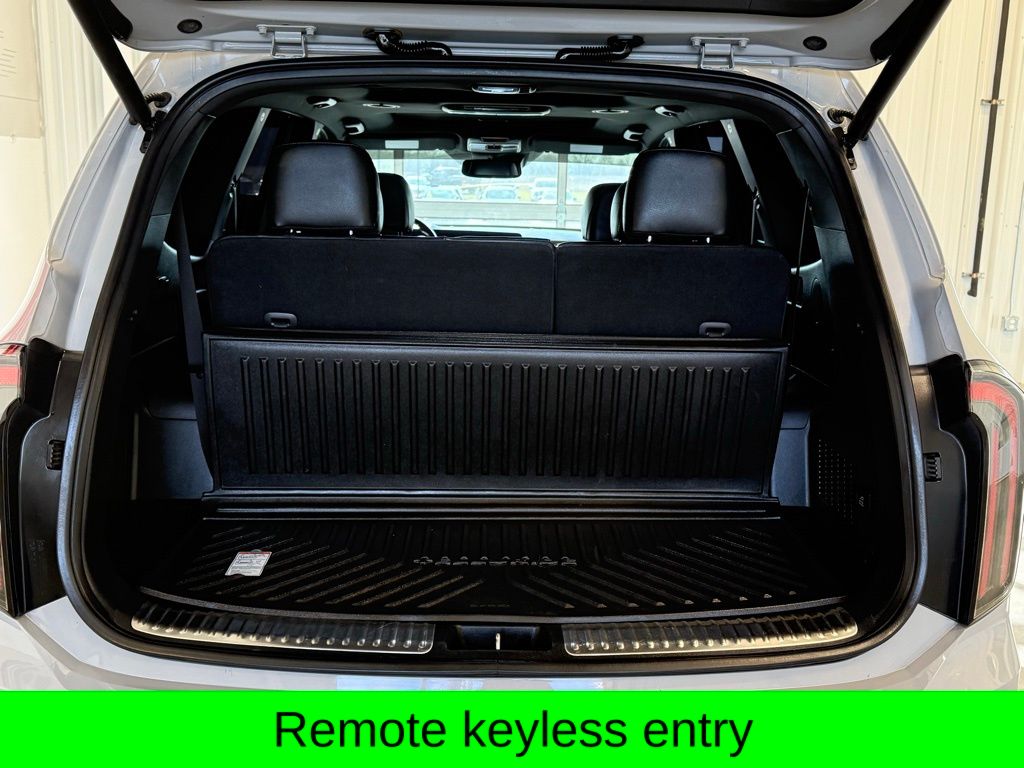 3rd row seats: split-bench, AM/FM radio: SiriusXM, Apple CarPlay & Android Auto, Exterior Parking Camera Rear, Front Bucket Seats, Front dual zone A/C, Heated & Ventilated Front Bucket Seats, Heated steering wheel, Leather Seat Trim, Memory seat, Navigation System, Power Liftgate, Power moonroof, Remote keyless entry, 10 Speakers, 3.648 Axle Ratio, 4-Wheel Disc Brakes, ABS brakes, Air Conditioning, Alloy wheels, Auto High-beam Headlights, Auto-dimming Rear-View mirror, Auto-leveling suspension, Automatic temperature control, Brake assist, Bumpers: body-color, Compass, Delay-off headlights, Driver door bin, Driver vanity mirror, Dual front impact airbags, Dual front side impact airbags, Electronic Stability Control, Emergency communication system: 911 Connect, Four wheel independent suspension, Front anti-roll bar, Front Center Armrest, Front fog lights, Front reading lights, Fully automatic headlights, Garage door transmitter: HomeLink, harman/kardon® Speakers, Heated door mirrors, Heated front seats, Hybrid Cargo Net, Illuminated entry, Knee airbag, Leather Shift Knob, Leather steering wheel, Low tire pressure warning, Occupant sensing airbag, Outside temperature display, Overhead airbag, Overhead console, Panic alarm, Passenger door bin, Passenger vanity mirror, Power door mirrors, Power driver seat, Power passenger seat, Power steering, Power windows, Radio data system, Radio: AM/FM Harman Kardon Audio System, Rear air conditioning, Rear anti-roll bar, Rear audio controls, Rear reading lights, Rear side impact airbag, Rear window defroster, Rear window wiper, Reclining 3rd row seat, Roof rack: rails only, Security system, Smart Key w/ Push Button and Remote Start, Speed control, Speed-sensing steering, Split folding rear seat, Spoiler, Steering wheel mounted audio controls, Tachometer, Telescoping steering wheel, Tilt steering wheel, Traction control, Trip computer, Turn signal indicator mirrors, Variably intermittent wipers, Ventilated front seats, Wheels: 18" x 7.5" Black Finish X-PRO Exclusive, 3rd row seats: split-bench, AM/FM radio: SiriusXM, Apple CarPlay & Android Auto, Exterior Parking Camera Rear, Front Bucket Seats, Front dual zone A/C, Heated & Ventilated Front Bucket Seats, Heated steering wheel, Leather Seat Trim, Memory seat, Navigation System, Power Liftgate, Power moonroof, Remote keyless entry.