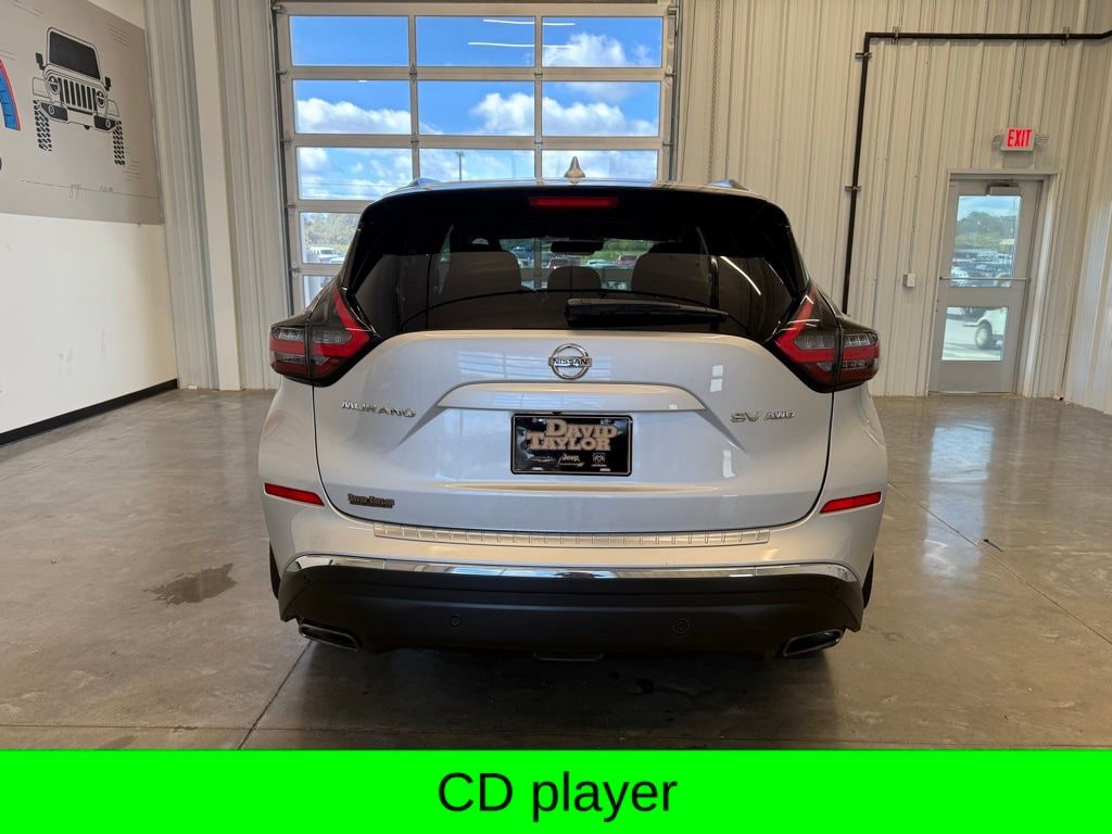 Murano SV, 3.5L V6 DOHC 24V, CVT with Xtronic, AWD, AM/FM radio: SiriusXM, Auto High-beam Headlights, Blind Spot Warning, CD player, Cloth Seat Trim, Front Bucket Seats, Front dual zone A/C, NissanConnect featuring Apple CarPlay and Android Auto, Rear Parking Sensors, Remote keyless entry, Wheels: 18" Machined Aluminum-Alloy, 4-Wheel Disc Brakes, 4.667 Axle Ratio, 6 Speakers, ABS brakes, Air Conditioning, Alloy wheels, AM/FM/CD/MP3/WMA Audio System, Auto-dimming Rear-View mirror, Automatic temperature control, Brake assist, Bumpers: body-color, Carpeted Floor Mats & Carpeted Cargo Mat, Child-Seat-Sensing Airbag, Delay-off headlights, Driver door bin, Driver vanity mirror, Dual front impact airbags, Dual front side impact airbags, Electronic Stability Control, Four wheel independent suspension, Front anti-roll bar, Front Center Armrest, Front reading lights, Fully automatic headlights, Garage door transmitter: HomeLink, Heated door mirrors, Illuminated entry, Knee airbag, Leather Shift Knob, Low tire pressure warning, Occupant sensing airbag, Outside temperature display, Overhead airbag, Overhead console, Panic alarm, Passenger door bin, Passenger vanity mirror, Power door mirrors, Power driver seat, Power passenger seat, Power steering, Power windows, Radio data system, Rear anti-roll bar, Rear Bumper Protector, Rear reading lights, Rear seat center armrest, Rear side impact airbag, Rear window defroster, Rear window wiper, Roof rack: rails only, Security system, Speed control, Speed-sensing steering, Speed-Sensitive Wipers, Splash Guards, Split folding rear seat, Spoiler, Steering wheel mounted audio controls, Tachometer, Telescoping steering wheel, Tilt steering wheel, Traction control, Trip computer, Turn signal indicator mirrors, Variably intermittent wipers, Murano SV, 3.5L V6 DOHC 24V, CVT with Xtronic, AWD, AM/FM radio: SiriusXM, Auto High-beam Headlights, Blind Spot Warning, CD player, Cloth Seat Trim, Front Bucket Seats, Front dual zone A/C, NissanConnect featuring Apple CarPlay and Android Auto, Rear Parking Sensors, Remote keyless entry, Wheels: 18" Machined Aluminum-Alloy.