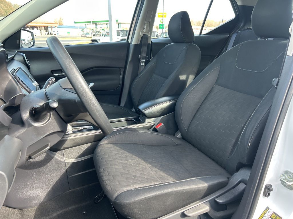 Fresh Powder 2023 Nissan Kicks SV FWD CVT with Xtronic 1.6L 4-Cylinder DOHC 16V 4D Sport Utility, FWD, Fresh Powder, 17" Alloy Wheels, Apple CarPlay/Android Auto, Blind Spot Warning, Front Bucket Seats, Power windows, Rear Parking Sensors, Remote keyless entry, Traction control.