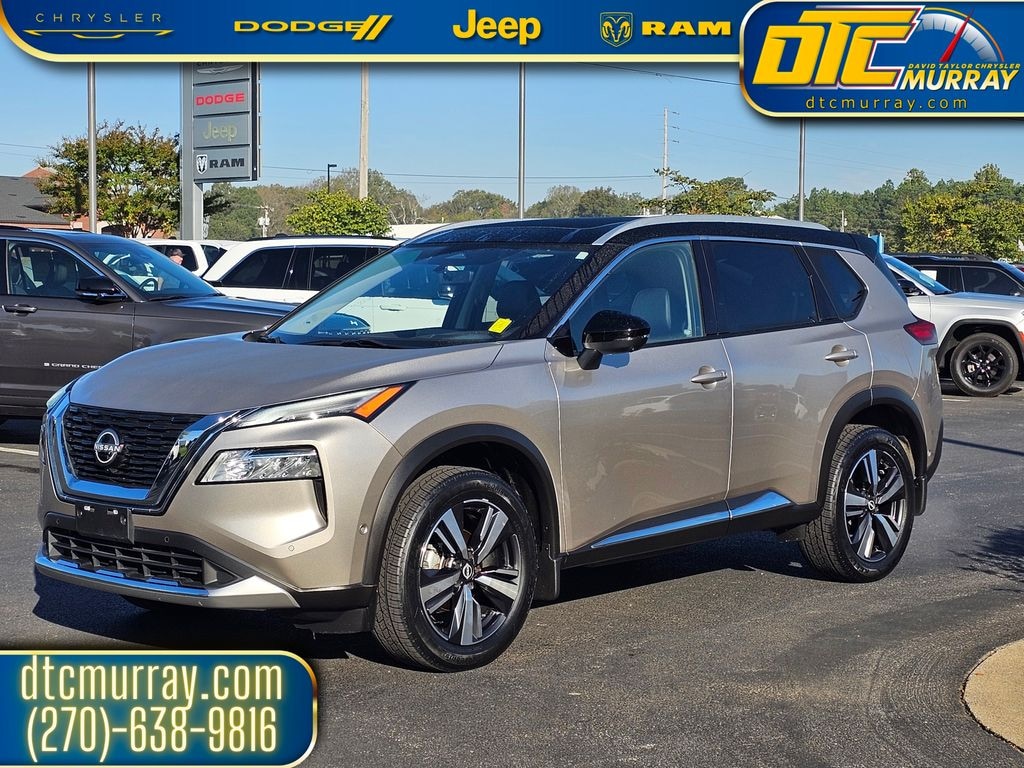 CARFAX One-Owner. 2023 Nissan Rogue Platinum Champagne Silver Metallic/Super Black AWD CVT with Xtronic 1.5L I3 Turbocharged DOHC 12V LEV3-ULEV50 201hp