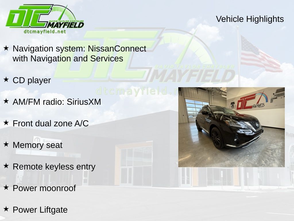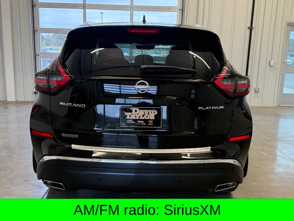 Murano Platinum, 3.5L V6 DOHC 24V, CVT with Xtronic, FWD, AM/FM radio: SiriusXM, Blind Spot Warning, CD player, Exterior Parking Camera Rear, Front dual zone A/C, Heated & Ventilated Front Bucket Seats, Heated rear seats, Heated steering wheel, Memory seat, Navigation system: NissanConnect with Navigation and Services, NissanConnect featuring Apple CarPlay and Android Auto, Power Liftgate, Power moonroof, Remote keyless entry, Semi-Aniline Leather-Appointed Seat Trim, 11 Speakers, 4-Wheel Disc Brakes, 4.667 Axle Ratio, ABS brakes, Air Conditioning, Alloy wheels, AM/FM/CD/MP3/WMA Audio System, Auto High-beam Headlights, Auto tilt-away steering wheel, Auto-dimming Rear-View mirror, Automatic temperature control, Brake assist, Bumpers: body-color, Cargo Area Protector, Cargo Net, Cargo Package, Carpeted Floor Mats & Carpeted Cargo Mat, Child-Seat-Sensing Airbag, Compass, Delay-off headlights, Driver door bin, Driver vanity mirror, Dual front impact airbags, Dual front side impact airbags, Electronic Stability Control, Emergency communication system: NissanConnect Services (first 6 months included), First Aid Kit, Four wheel independent suspension, Front anti-roll bar, Front Bucket Seats, Front Center Armrest, Front fog lights, Front reading lights, Fully automatic headlights, Garage door transmitter: HomeLink, Heated door mirrors, Heated front seats, Illuminated entry, Illuminated Kick Plates, Illuminated Kick Plates (PIO), Knee airbag, Leather steering wheel, Low tire pressure warning, NissanConnect Services Powered By SiriusXM, Occupant sensing airbag, Outside temperature display, Overhead airbag, Overhead console, Panic alarm, Passenger door bin, Passenger vanity mirror, Power door mirrors, Power driver seat, Power passenger seat, Power steering, Power windows, Radio data system, Rear anti-roll bar, Rear Bumper Protector, Rear reading lights, Rear seat center armrest, Rear side impact airbag, Rear window defroster, Rear window wiper, Retractable Cargo Cover, Security system, Speed control, Speed-sensing steering, Speed-Sensitive Wipers, Splash Guards (B92), Split folding rear seat, Spoiler, Steering wheel memory, Steering wheel mounted audio controls, Tachometer, Telescoping steering wheel, Tilt steering wheel, Traction control, Trip computer, Turn signal indicator mirrors, Variably intermittent wipers, Ventilated front seats, Wheels: 20" Black Satin Alloy, Wheels: 20" Unique Dark Hyper Silver, Murano Platinum, 3.5L V6 DOHC 24V, CVT with Xtronic, FWD, AM/FM radio: SiriusXM, Blind Spot Warning, CD player, Exterior Parking Camera Rear, Front dual zone A/C, Heated & Ventilated Front Bucket Seats, Heated rear seats, Heated steering wheel, Memory seat, Navigation system: NissanConnect with Navigation and Services, NissanConnect featuring Apple CarPlay and Android Auto, Power Liftgate, Power moonroof, Remote keyless entry, Semi-Aniline Leather-Appointed Seat Trim.