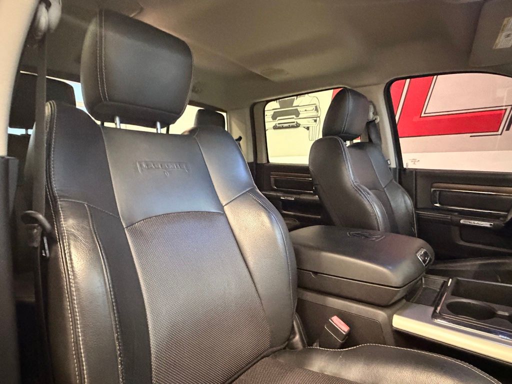 1 Year Trial (Registration Required), 1-Year SIRIUSXM Traffic Service, 1-Yr SIRIUSXM Travel Link Service, 10 Speakers, 115V Auxiliary Power Outlet, 180 Amp Alternator, 3.73 Rear Axle Ratio, 4-Wheel Disc Brakes, ABS brakes, Air Conditioning, Alloy wheels, AM/FM radio: SiriusXM, Audio memory, Auto-dimming door mirrors, Auto-dimming Rear-View mirror, Automatic temperature control, Brake assist, Bumpers: chrome, Center Hub, Chrome Exterior Mirrors, Chrome Power Trailer Tow Mirrors, Compass, Delay-off headlights, Driver door bin, Driver vanity mirror, Dual front impact airbags, Dual front side impact airbags, Electronic Stability Control, Emergency communication system, Exterior Mirrors Courtesy Lamps, Exterior Mirrors w/Heating Element, Exterior Mirrors w/Memory, Exterior Mirrors w/Supplemental Signals, Folding Flat Load Floor Storage, Front anti-roll bar, Front Center Armrest w/Storage, Front dual zone A/C, Front fog lights, Front reading lights, Fully automatic headlights, Garage door transmitter, GPS Navigation, HD Radio, Heated door mirrors, Heated Front Seats, Heated front seats, Heated steering wheel, High Back Seats, Illuminated entry, Leather steering wheel, Leather Trim 40/20/40 Bench Seat, Locking Tailgate, Low tire pressure warning, Manufacturer's Statement of Origin, Memory seat, Occupant sensing airbag, Outside temperature display, Overhead airbag, Overhead console, Panic alarm, ParkView Rear Back-Up Camera, Passenger door bin, Passenger vanity mirror, Power 10-Way Memory Driver & 6-Way Passenger Seats, Power Adjustable Pedals w/Memory, Power door mirrors, Power driver seat, Power Lumbar Adjust, Power passenger seat, Power steering, Power windows, Protection Group, Quick Order Package 22H Laramie, Radio data system, Radio: Uconnect 8.4A AM/FM/SXM/BT, Radio: Uconnect 8.4AN AM/FM/SXM/HD/BT/NAV, Rear 60/40 Split Folding Seat, Rear seat center armrest, Rear step bumper, Remote keyless entry, Security system, Single Disc Remote CD Player, SIRIUSXM Traffic, SiriusXM Travel Link, Speed control, Split folding rear seat, Steering wheel mounted audio controls, Tachometer, Tilt steering wheel, Traction control, Trip computer, Turn signal indicator mirrors, Variably intermittent wipers, Vendor Painted Cargo Box Tracking, Ventilated Front Seats, Ventilated front seats, Voltmeter, Wheels: 18" x 8.0" Polished Aluminum.