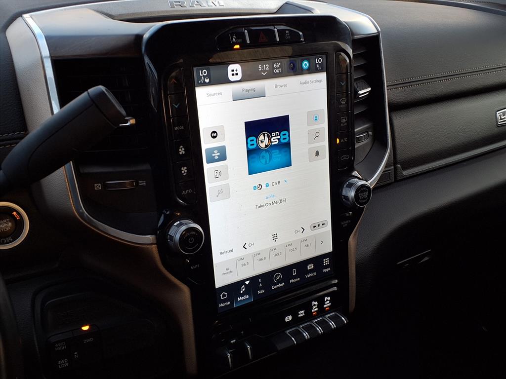 Quick Order Package 2HH Laramie. Laramie Level 1 Equipment Group: Google Android Auto; SiriusXM Radio Service; Blind Spot and Cross Path Detection; LED Tail Lamps; Power Adjustable Pedals with Memory; For Details. Visit DriveUconnect.com; For More Info. Call 800-643-2112; Integrated Voice Command with Bluetooth; 12 Touchscreen Display; Auto Power-Folding Mirrors; Front LED Fog Lamps; Mirror Running Lights; Alexa Built-In; Apple CarPlay; Power Adjustable Convex Aux Mirrors; Forward and Reverse Utility Lights; Disassociated Touchscreen Display; Remote Tailgate Release; Center Hub; 2nd Row in Floor Storage Bins; Rear Window Defroster; Rain Sensitive Windshield Wipers; Rear Power Sliding Window; Connectivity - US/Canada; GPS Navigation; 4G LTE Wi-Fi Hot Spot; GPS Antenna Input; Exterior Mirrors with Heating Element; Auto Dim Exterior Mirror; SiriusXM with 360L; Global Telematics Box Module; Connected Travel and Traffic Services; LED Reflector Headlamps; Foam Bottle Insert (door Trim Panel); 18 X 8.0 Polished Aluminum Wheels; Off-Road Information Pages; Selectable Tire Fill Alert; Trailer Tow Pages; HD Radio; Uconnect 5 Navigation with 12.0 Display Radio; Power Heated Fold Telescopic Mirrors with Memory; Exterior Mirrors with Supplemental Signals; Exterior Mirrors Courtesy Lamps; Auto High Beam Headlamp Control; Chrome Exterior Mirrors; Exterior Mirrors with Memory; Power Adjust Mirrors; Power Telescoping Mirrors; Auto Dim Exterior Passenger Mirror; Auto Adjust in Reverse Exterior Mirrors; ParkSense Front/rear Park Assist System. Safety Group: Auto High Beam Headlamp Control; Blind Spot and Cross Path Detection; Rain Sensitive Windshield Wipers; Adaptive Cruise Control with Stop; Adaptive Steering System; Full Speed Forward Collision Warning Plus; Lane Keep Assist. Blind Spot and Cross Path Detection. Adaptive Steering System. LT275/70R18E OWL On/off Road Tires. Tow Hooks. **Equipment listed is based on original vehicle build and subject to change. Please confirm the accuracy of the included equipment by calling the dealer prior to purchase.**